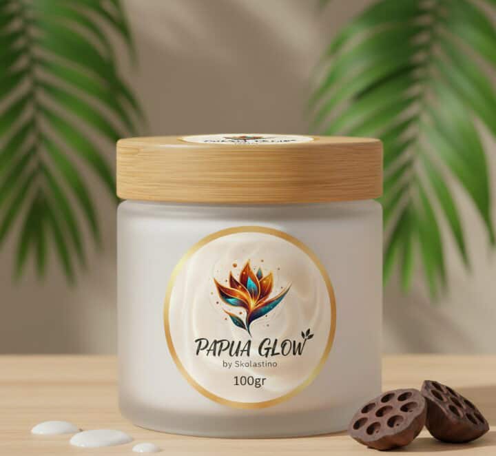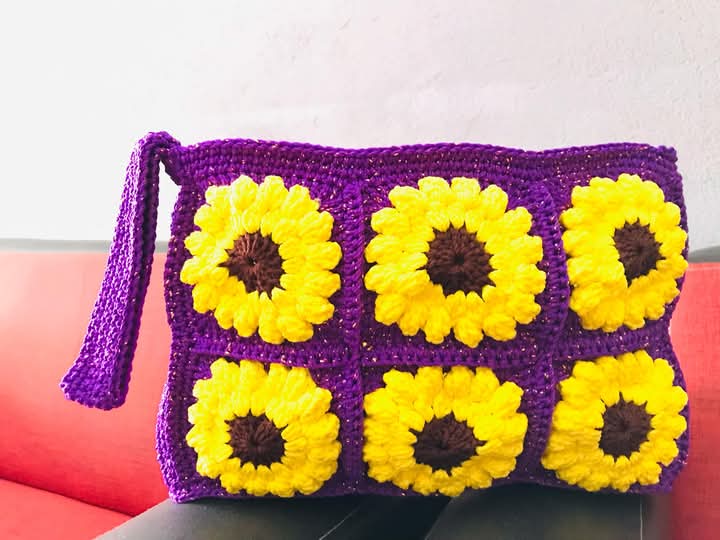 "Pouch Granny Papua" merujuk pada tas rajutan modern dengan motif granny square yang dibuat oleh pen